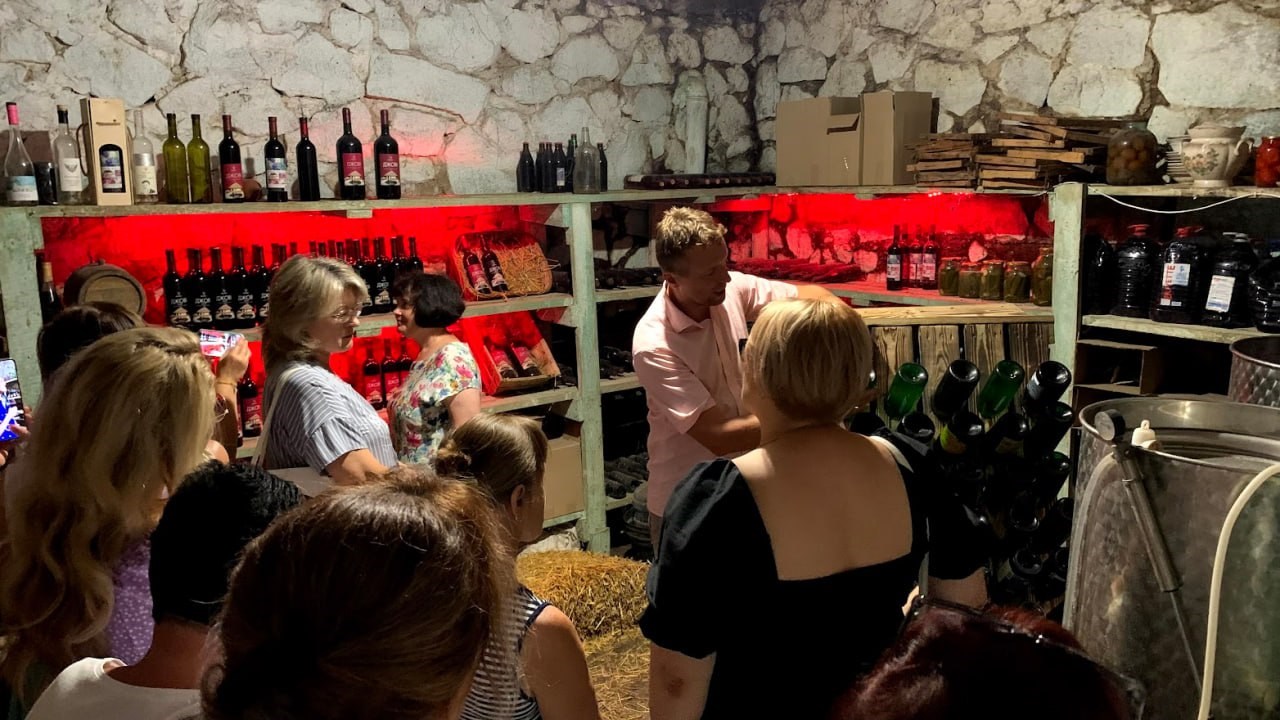 Село Бабурка – сімейна виноробня Villa Del Vino. Харизматичний господар виноробні розповість і покаже процес виробництва вина, ми дізнаємося про всі тонкощі цього ремесла, відчуємо всі його нотки під час дегустації. А територія виноробні не залишить нікого байдужим – тут і затишна альтанка з килимами, і еко-будинок, і ставок з рибками, колекція жорен, підвальчик з вином та неповторна атмосфера, яка затишно обіймає та не відпускає додому! За бажанням можна придбати пляшечку червоного сухого вина (за додаткову платню). Вільний час – насолоджуємося відпочинком на природі, фотографуємось, гуляємо контактним зоопарком та навіть можна спуститись в долину до річки Середня Хортиця.