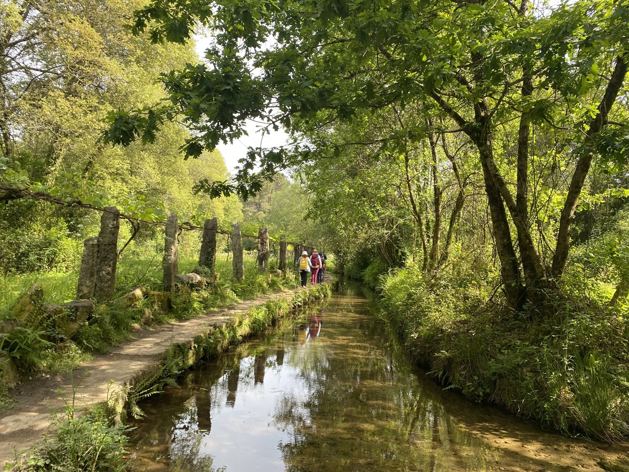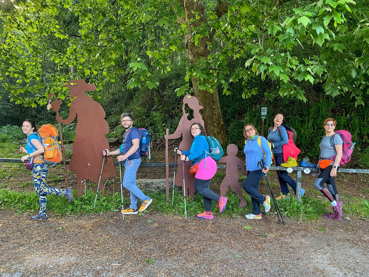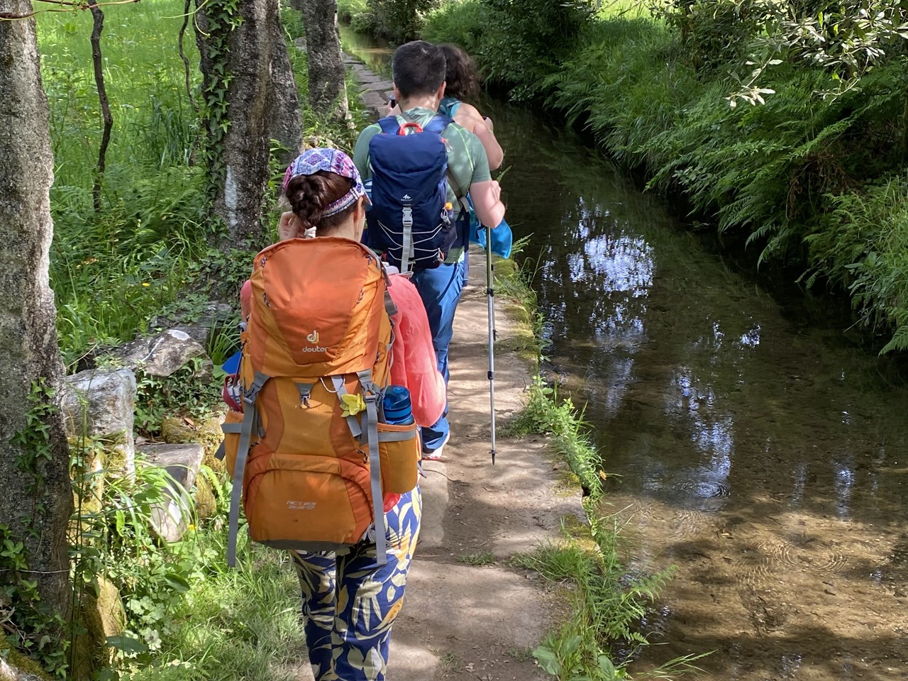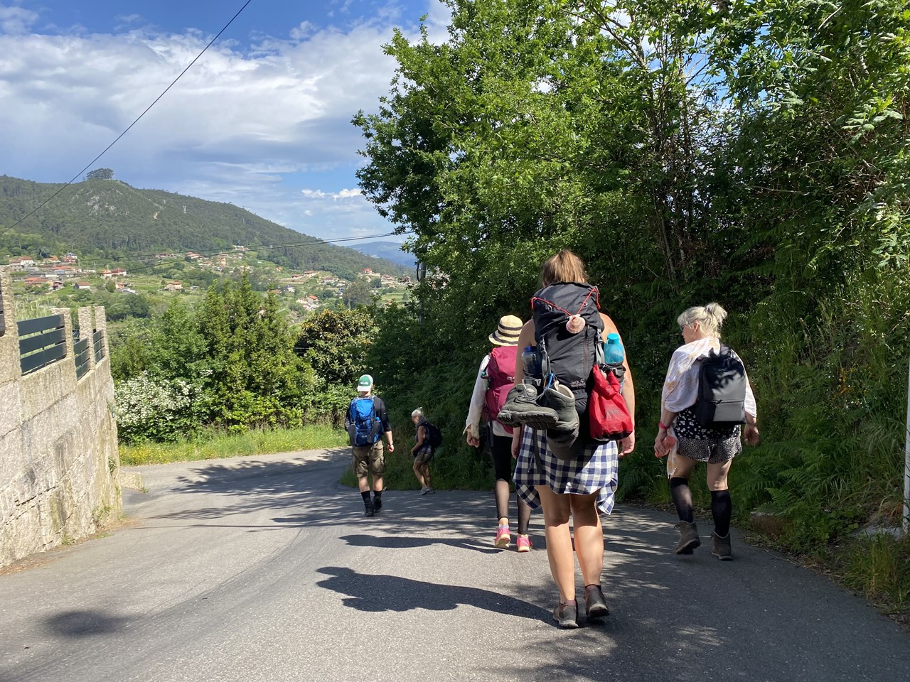 Сьогодні маршрут складніший: попереду 17 км із кількома підйомами. Спершу йдемо асфальтом, але вже незабаром стежка веде нас крізь ліси, повні тіні та пахощів квітів.