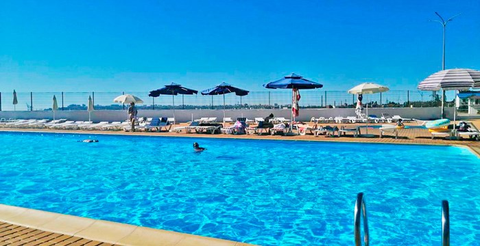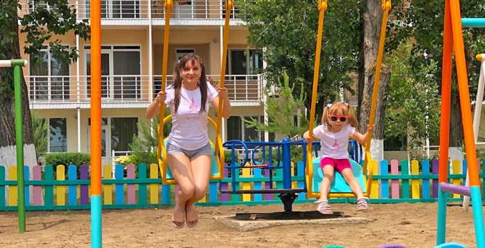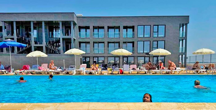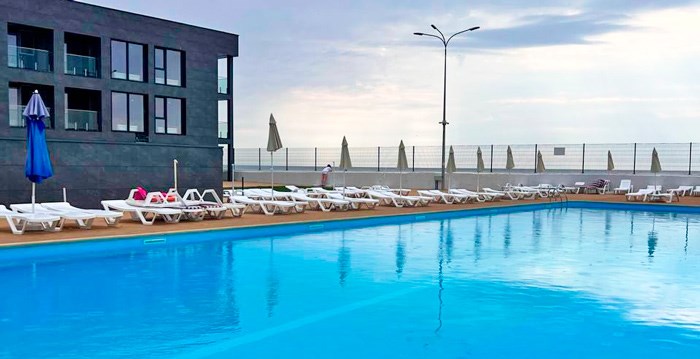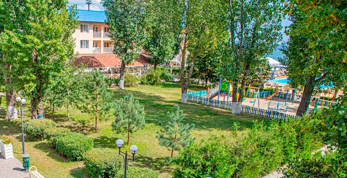 На території комплексу є 2 басейни: дорослий 10*25 м., глибина – 1,6 м., дитячий (для дітей віком до 7 років): 2 круглі миски, глибина – 0,5 м. Шезлонги біля басейнів входять у вартість путівки.