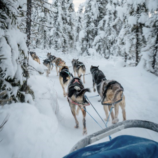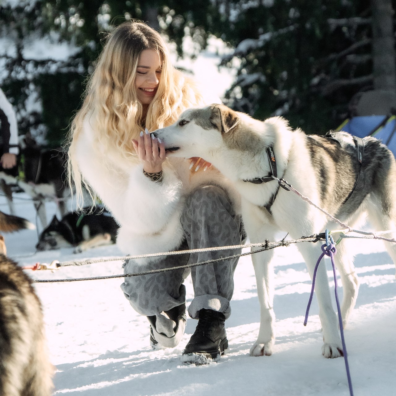 Після катання бажаючі можуть покататися на собачих упряжках або снігоходах серед засніжених лісів.