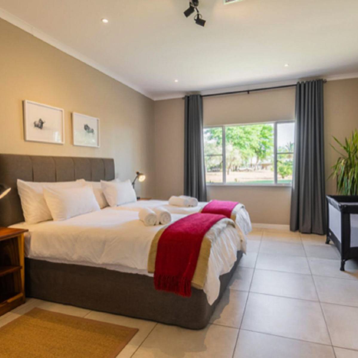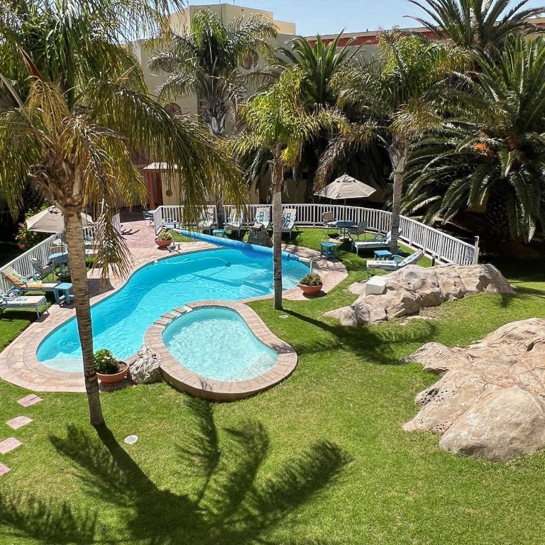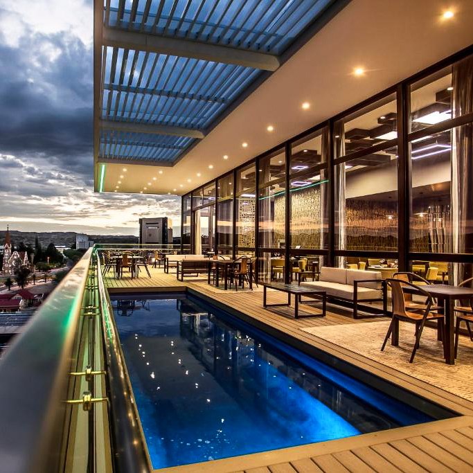 4-зірковий готель розташований у центрі міста Віндхук. Із просторих номерів відкривається краєвид на місто. На території готелю є кілька ресторанів, а також панорамна тераса з басейном і зоною відпочинку. В номерах є фен та рушники. Сніданок не входить у вартість проживання.