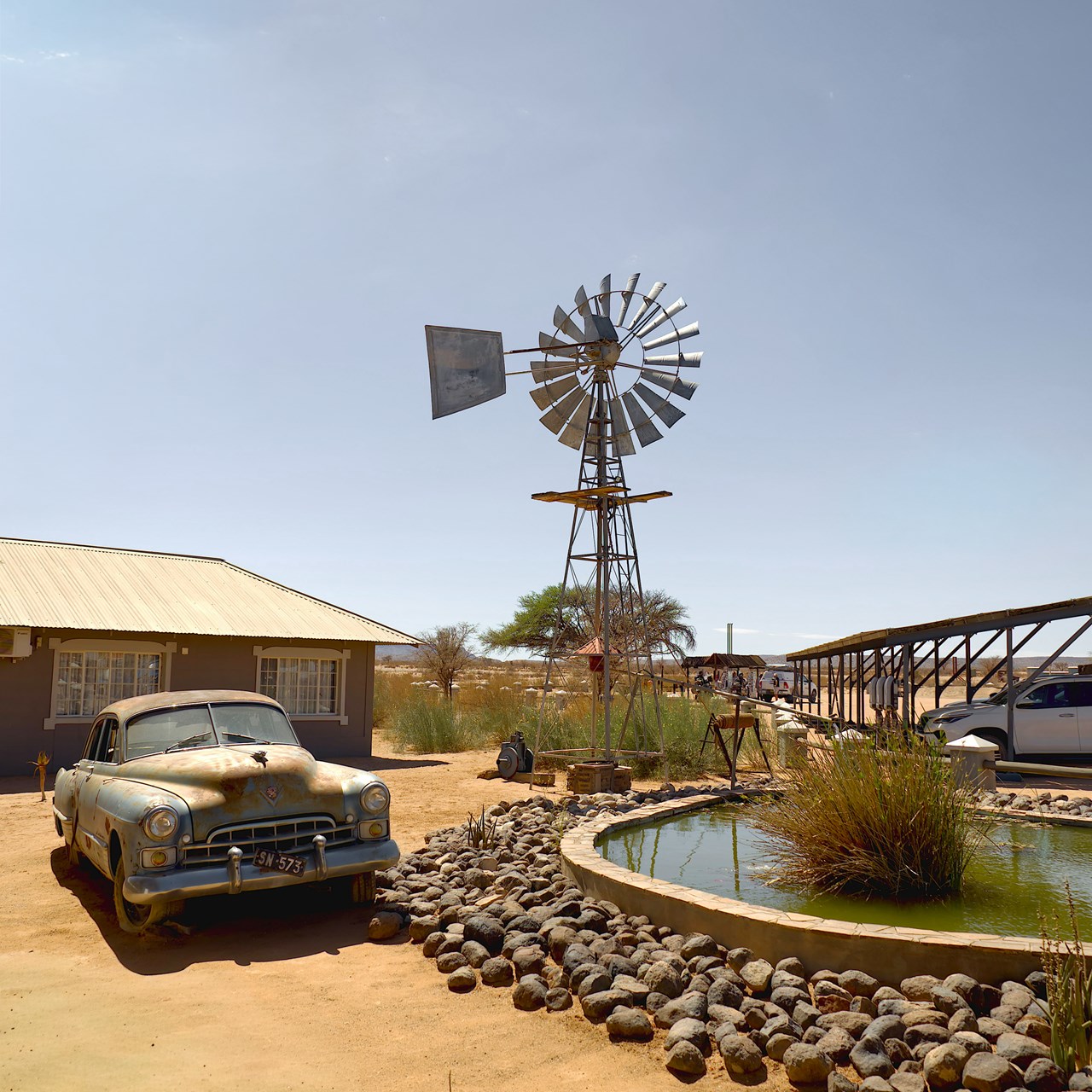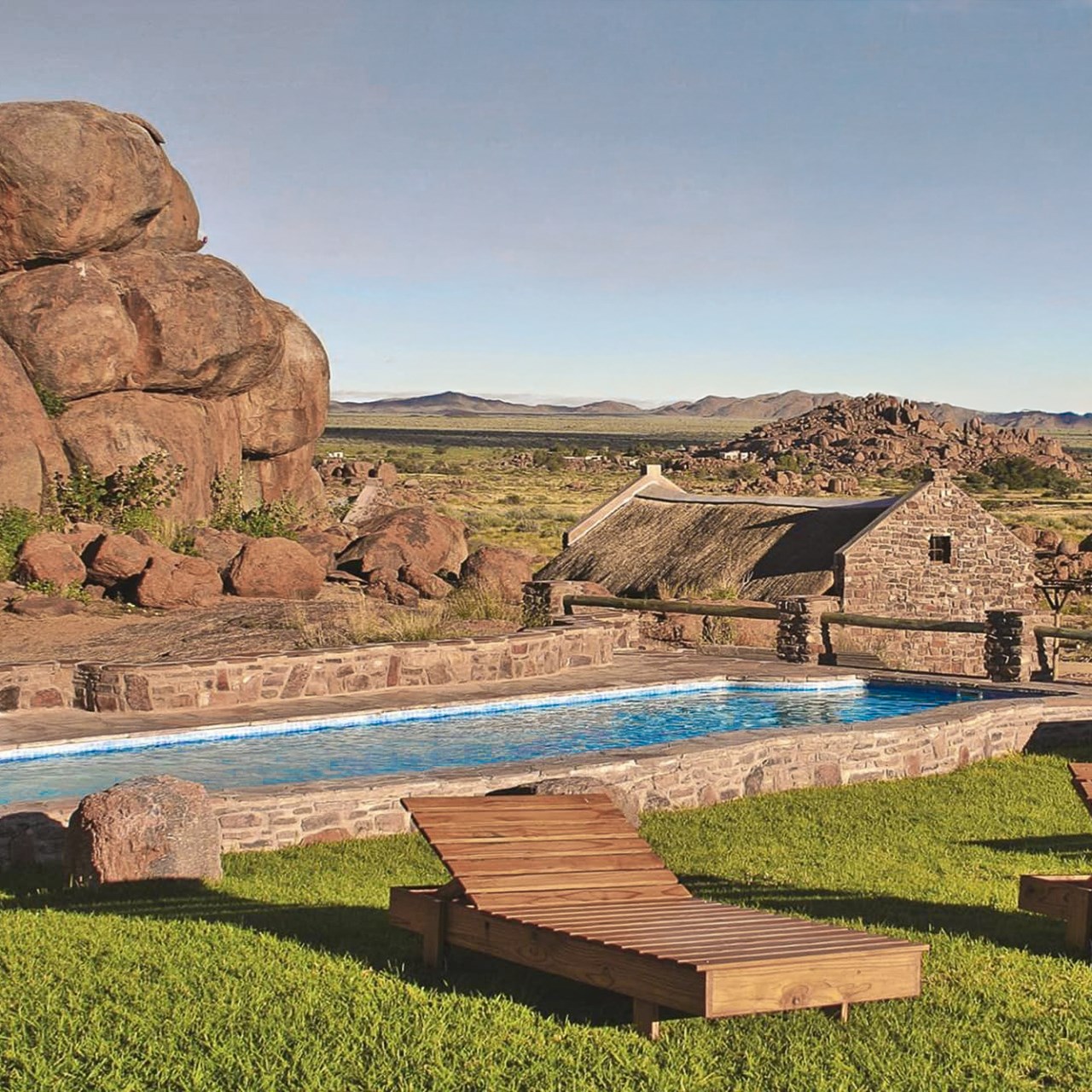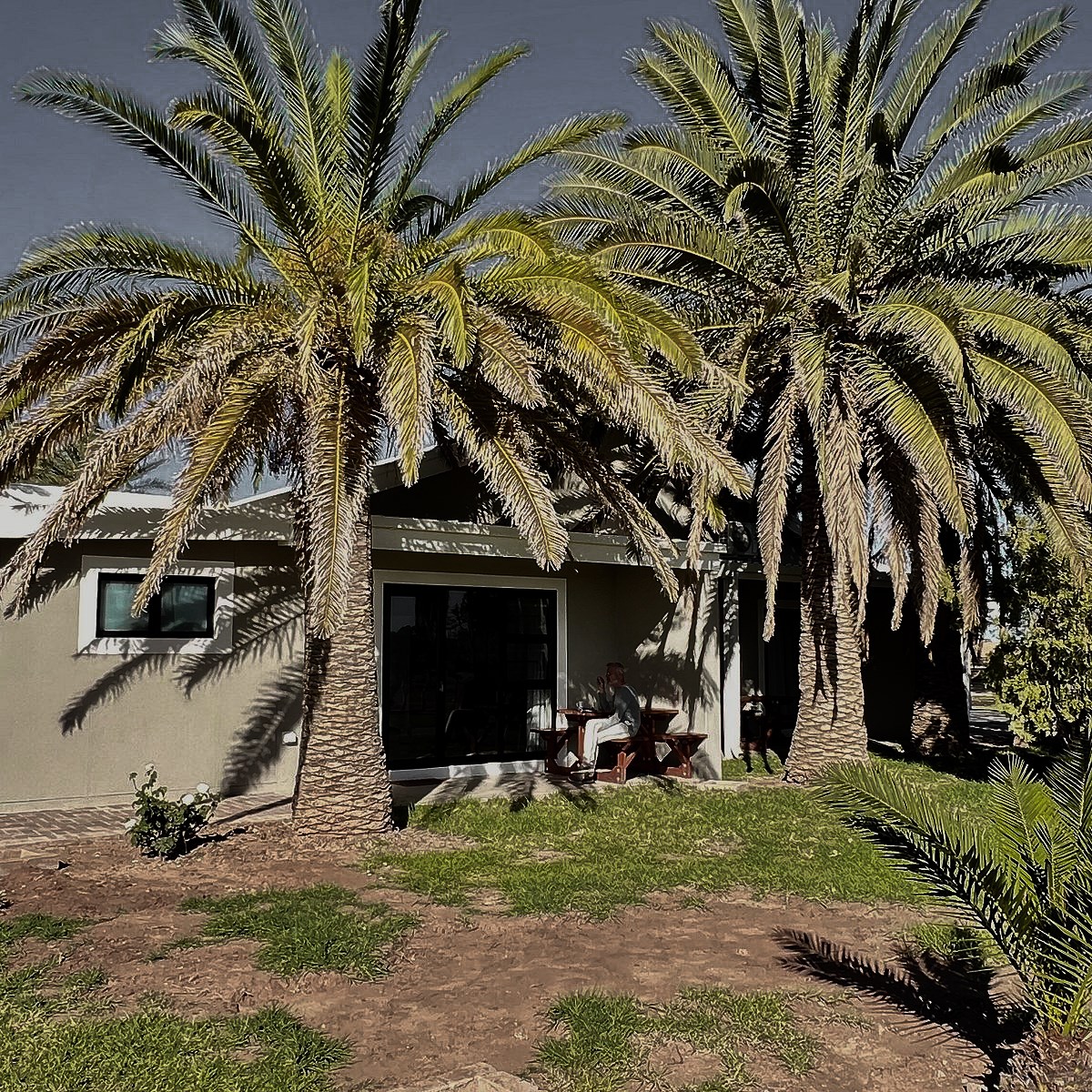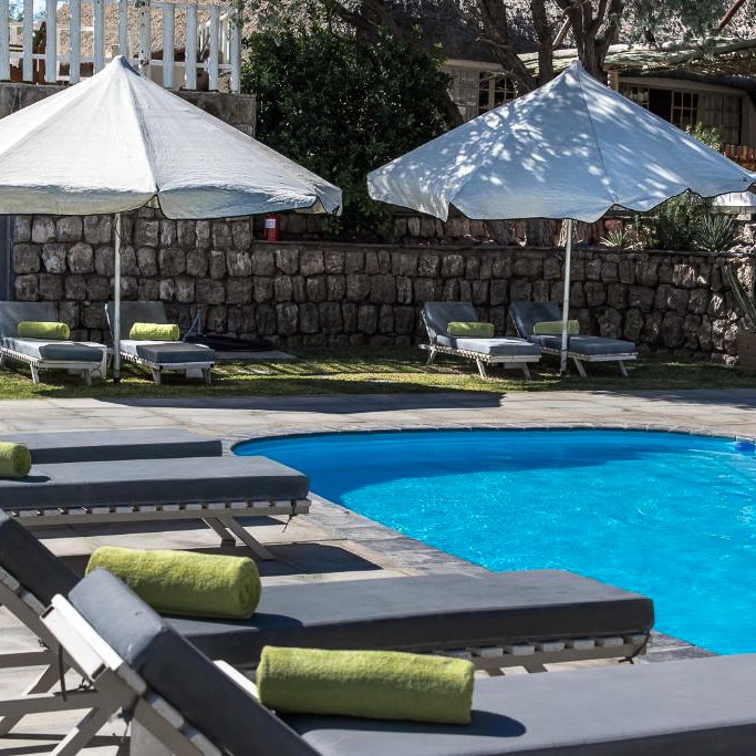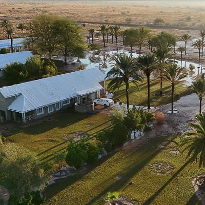 До вечора приїжджаємо до затишної лоджі поруч із парком Етоша, де проведемо дві ночі. Вечеря біля басейну, релакс і підготовка до великого сафарі наступного дня.