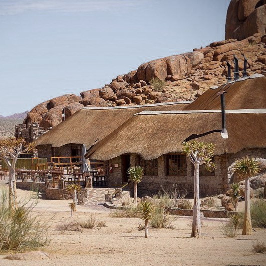 Після сніданку їдемо на південь, у напрямку Дамараленду — регіон, де гори, скелі й пустеля зливаються в дикий, позачасовий ландшафт.