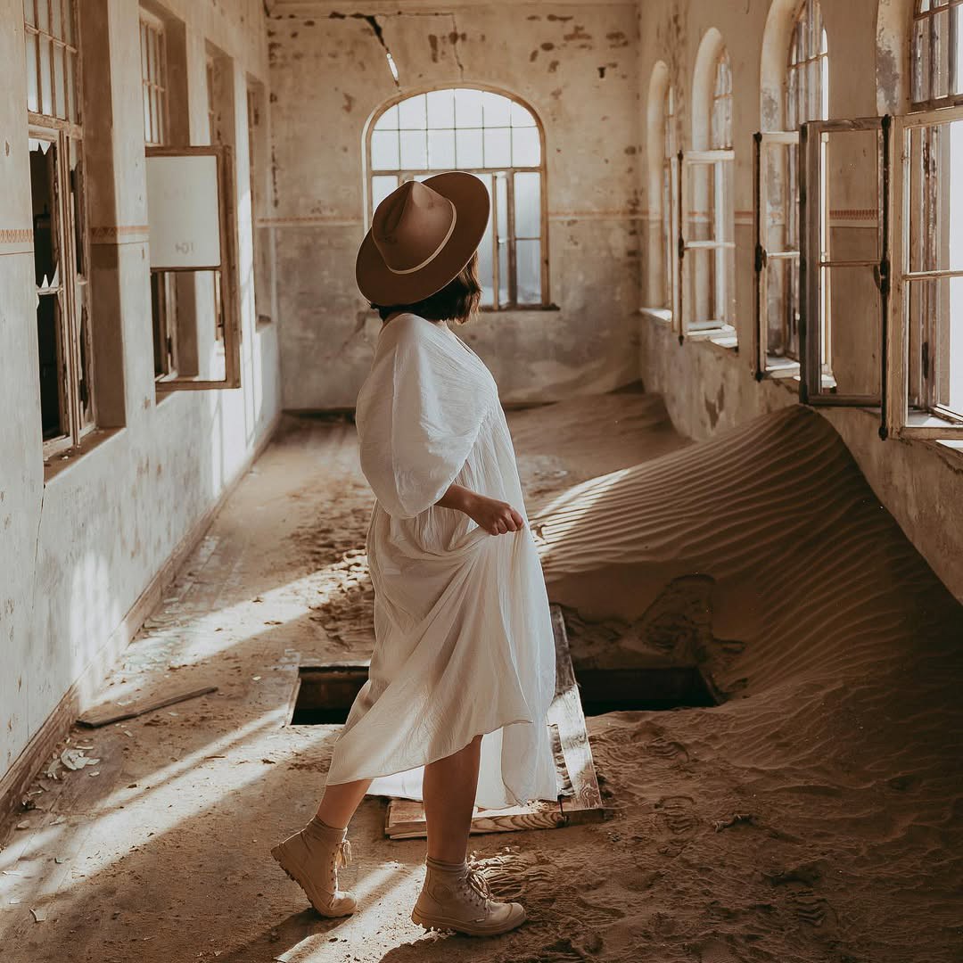 Рано-вранці їдемо в Kolmanskop — легендарне місто-привид, яке поглинає пустеля. Піски заходять у будинки, створюючи сцени, які виглядають немов із сюрреалістичного фільму.