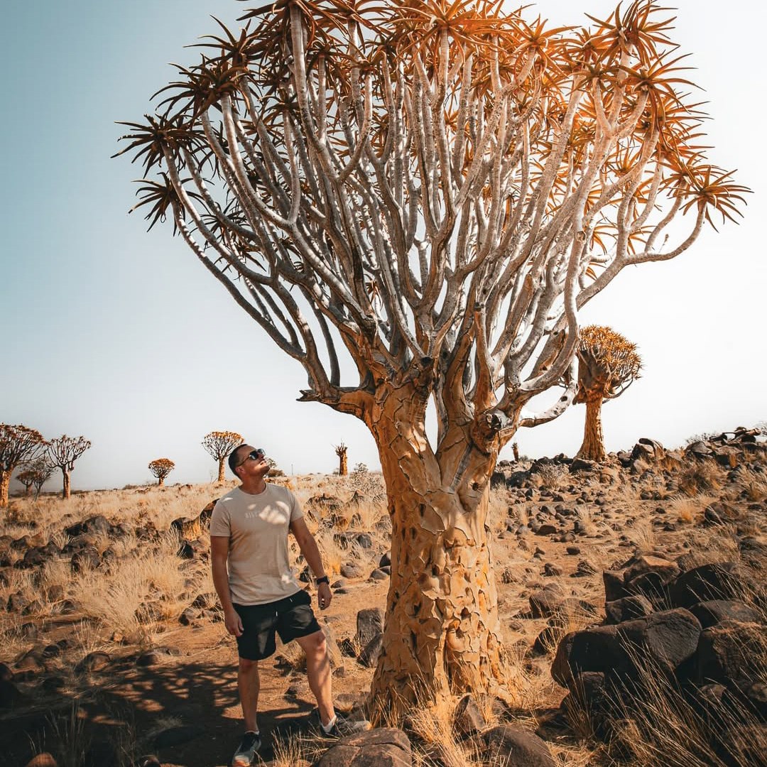 Вранці відвідаємо Quiver Tree Forest — ліс дивовижних «алое-древ», які нагадують фентезійні рослини. Фото тут виходять неймовірні: камені, жовте світло та химерні гілки цих дерев. Після обіду — виїзд у напрямку Mariental.