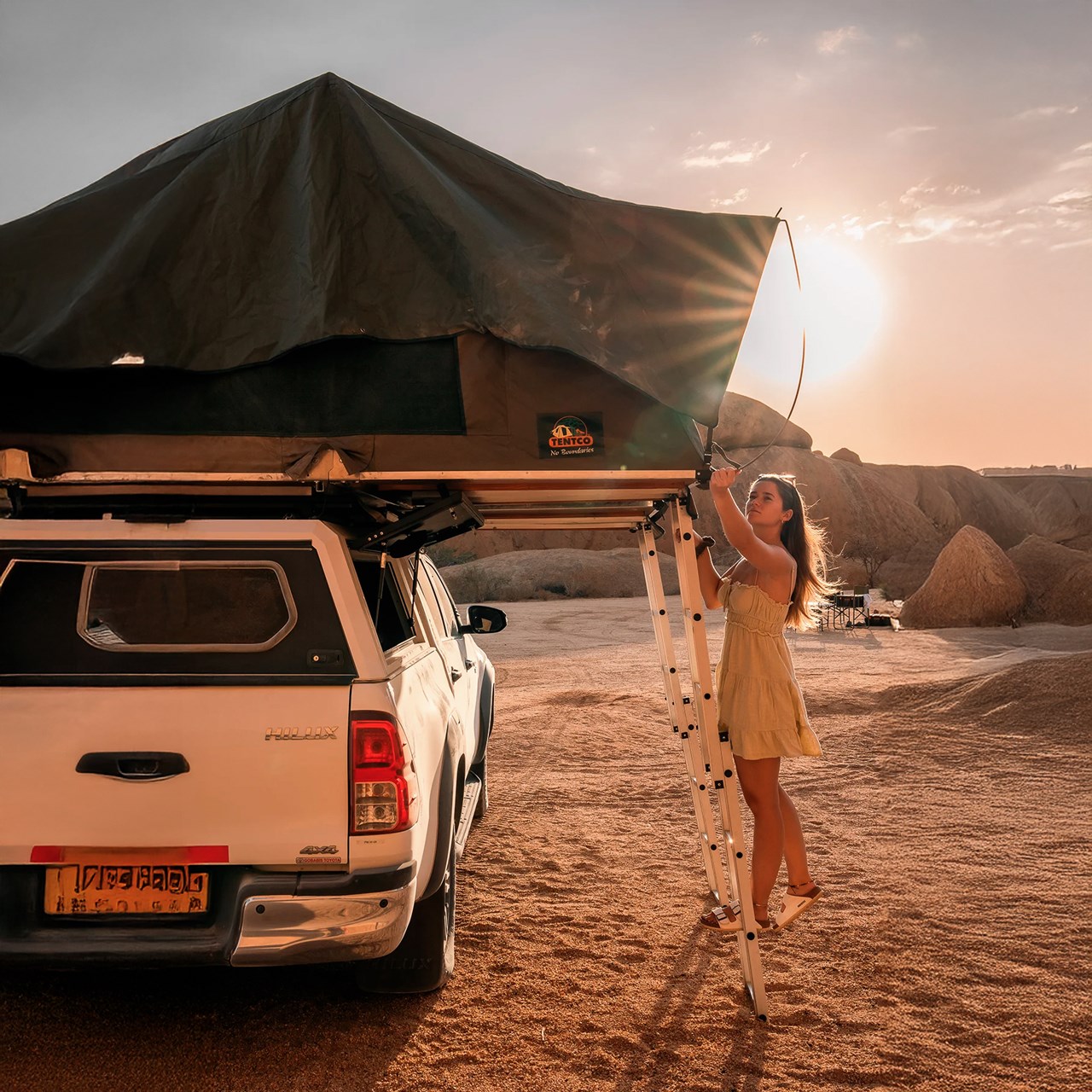Вечір проведемо біля вогнища.Ночівля — у наметах на дахах наших авто, прямо серед пустелі.