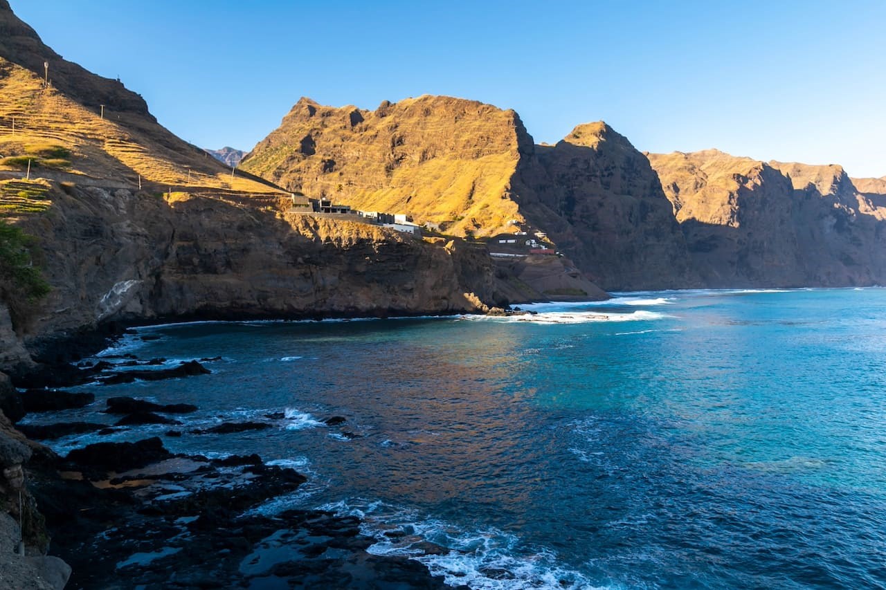 Один з найпрекрасніших прибережних треків, які ми пройдемо, це маршрут від Крузіньї до Понта-ду-Сол через селище Фонтаньяс. Селище Фонтаньяс, розташоване, здається, як орлине гніздо на схилі гори, є одним із найвражаючіших місць в Кабо-Верде і обов’язкове для кожного відвідувача Санту-Антан.