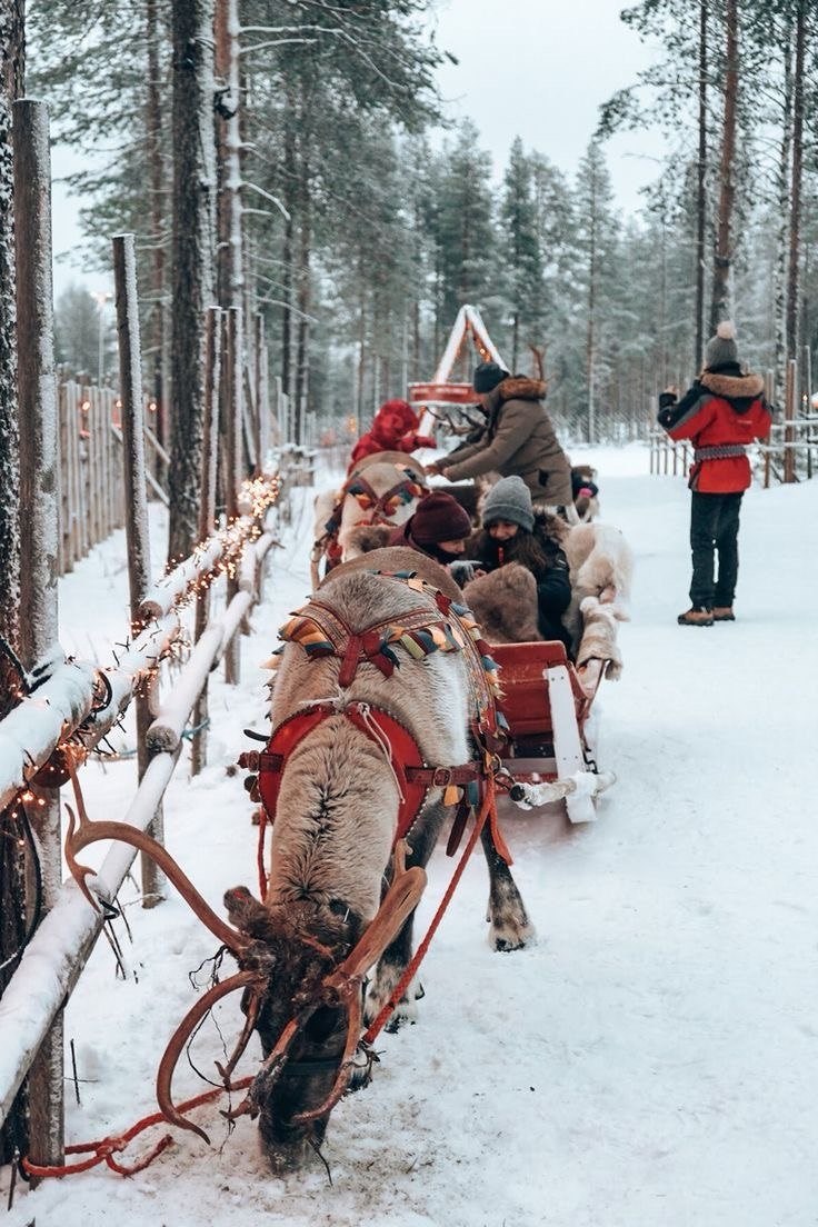 - катання на оленячих упряжках серед засніжених лісів;