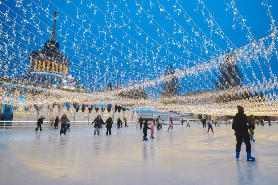 Ковзанка цього року претендуватиме на звання найбільшої в Україні – її площа перевищить 3000 м². Як вокзал відкриває шляхи для мандрівників, так і ковзанка на ВДНГ стане центром зимової подорожі: посередині льодової арени встановлять казкову башту з годинником, а поруч – новорічний потяг, який стане однією з головних фотозон сезону. Ще один магічний годинник, що відлічує час до див, закріплять на центральному павільйоні Експоцентру.