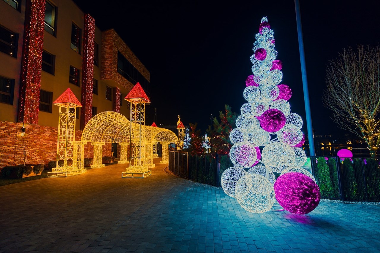 - казкові арки та сяючі фігурки тварин;