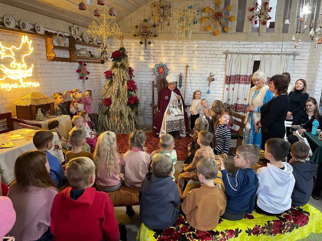 - Святкова фотозона з шопкою та атрибутами Різдва.